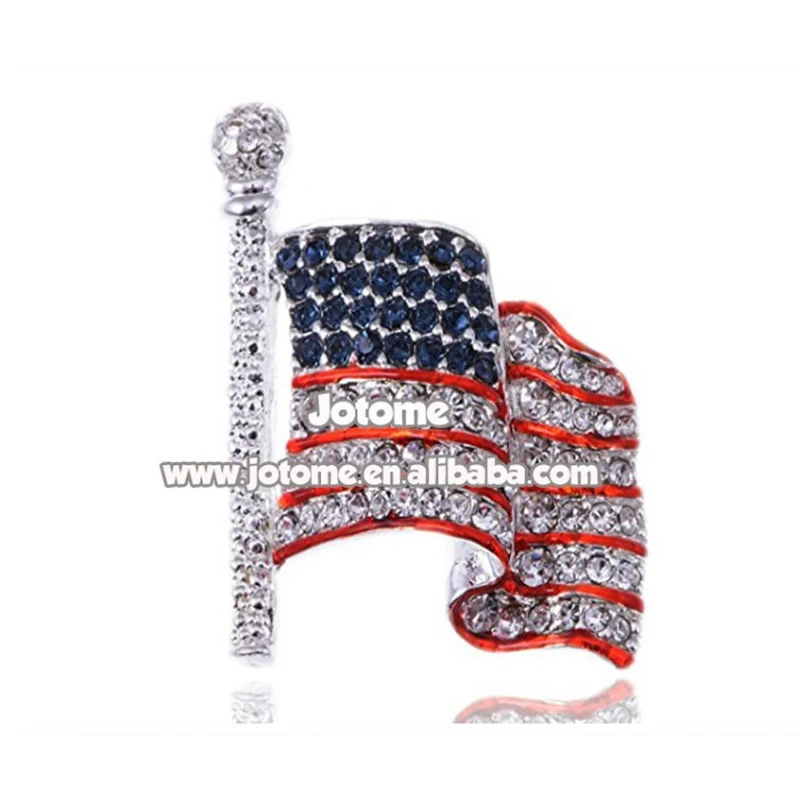 Special Offer 100 Pçs Venda Quente Vermelho Branco Azul Eua Bandeira Americana Forma Eua 4th De Julho Independência Dia Strass Broche Pino Jóias Discount 10% Today!