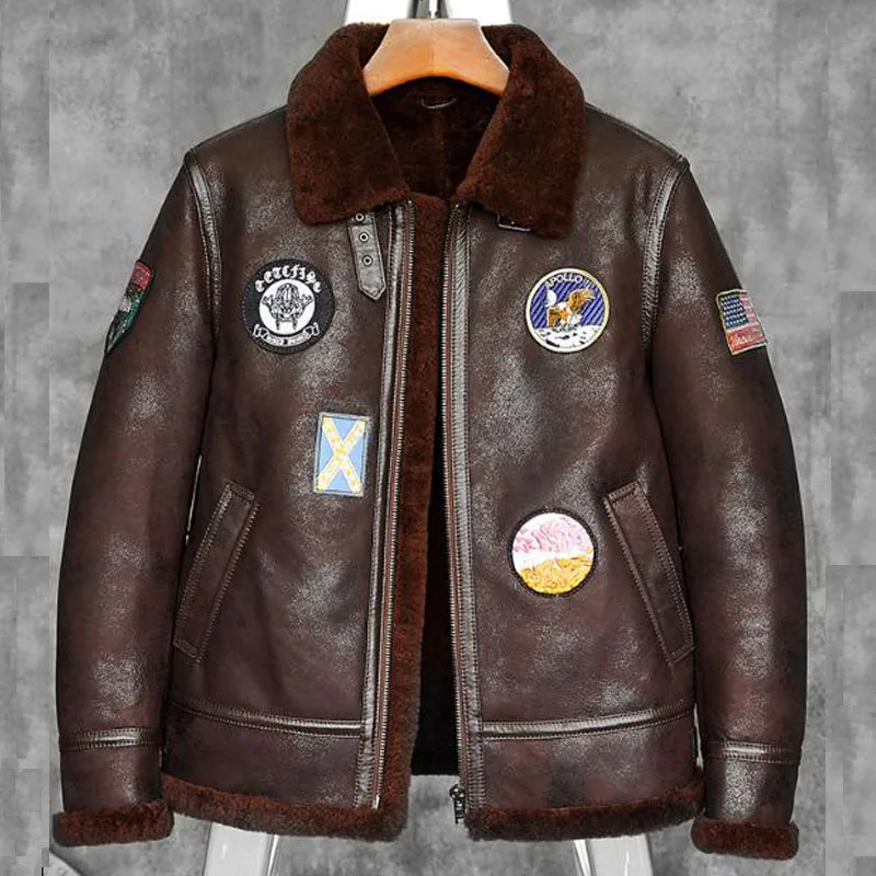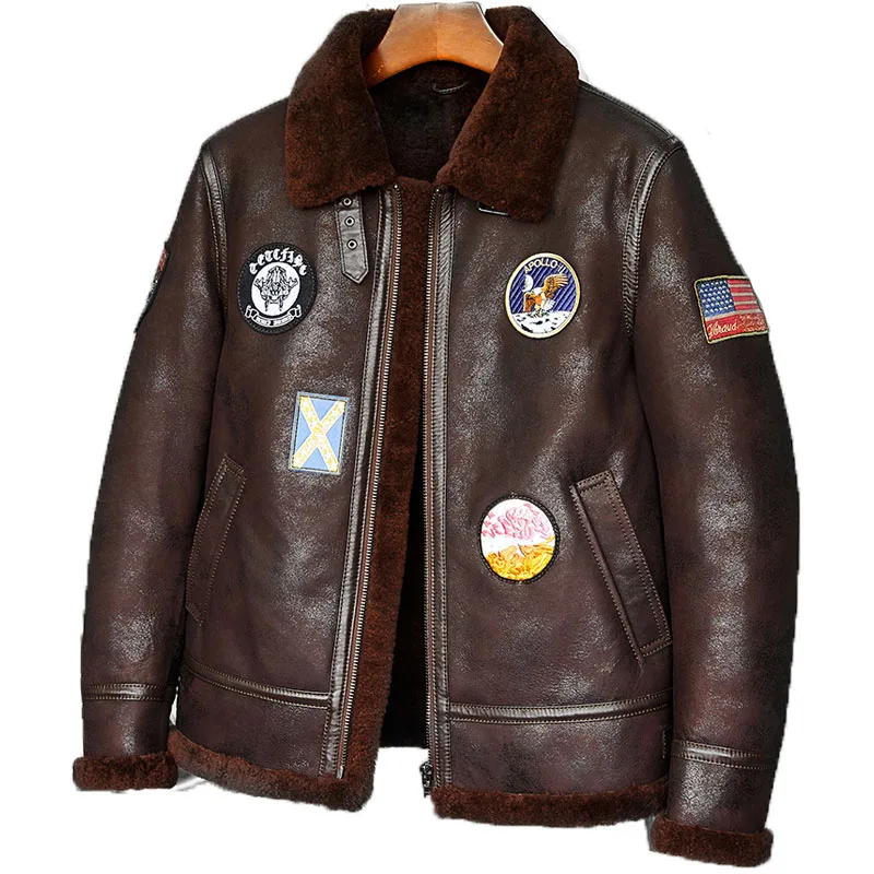 Special Offer 2018 NOVA Mens B-3 Aviador Jaqueta De Pele De Carneiro Shearling Casaco Bandeira Americana Braçadeira Curto Casaco De Pele Discount 15% Today!